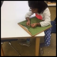 Children find comfort in activities that resemble home. They prepare their own snack and care for their classroom environment. They learn lessons on personal hygiene and self help that they will incorporate into their lives at school and outside. These works are designed to boost fine motor control and hand and eye coordination.....important prerequisites for writing. Multi step, purposeful activities train children to concentrate on the task at hand and work with mindfulness. This will be essential for them while working on advanced academic subjects, like Math and Language.